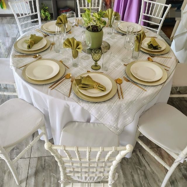- Cubremanteles (lisos, organza, brocados, estampados)
